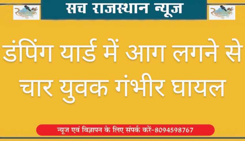 बीकानेर। डंपिंग यार्ड में आग लगने से चार युवक गंभीर घायल होने की ख़बर है। चारों घायलों को पीबीएम के ट्रोमा सेंटर लाया गया, जहां उनका इलाज जारी है। घायलों की पहचान करमीसर निवासी 20 वर्षीय संजु पुत्र पप्पूराम, 20 वर्षीय राजा पुत्र रामदेव, 21 वर्षीय मनीष पुत्र गणपत राम व 21 वर्षीय नवीन पुत्र हुक्माराम के रूप में हुई है। चार में से 2 अधिक गंभीर बताए जा रहे हैं। वहीं अन्य लो भी काफी हद तक जले हैं। मामला करमीसर का है। ख़बर लिखे जाने तक नयाशहर पुलिस घटनास्थल ढ़ूंढ़ रही थी। घायलों को पीबीएम लेकर पहुंचे लोगों ने पहले सिलेंडर ब्लास्ट होने की बात कही। बाद में कहा कि चारों युवक डंपिंग यार्ड में बैठे सिगरेट पी रहे थे, चिंगारी गिरी और ब्लास्ट हो गया।
