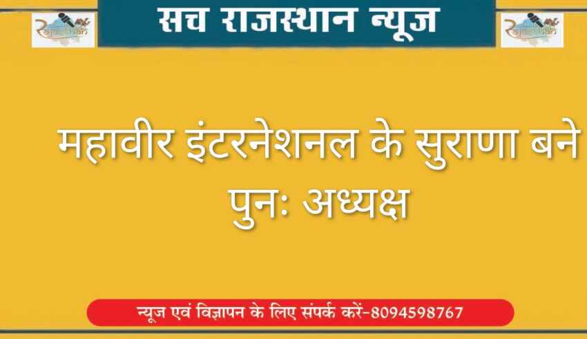 बीकानेर। महावीर इंटरनेशनल, बीकानेर के वर्ष 2025-27 के सत्र के लिए हुए चुनाव में वीर नरेंद्र सुराणा को निर्विरोध अध्यक्ष चुना गया है। चुनाव अधिकारी राजेश वैद की देखरेख में हुए चुनाव में सुराणा को लगातार दूसरे कार्यकाल के लिए पुनः अध्यक्ष चुना गया है। चुनाव अधिकारी ने इसके साथ ही कार्यकारिणी के लिए चुने गए 6 निदेशकों प्रवीण कुमार मित्तल, सुरेश गुप्ता, अजीत मल खजांची, कन्हैयालाल बोथरा, अमित डागा तथा सुरेंद्र जैन के निर्वाचन की घोषणा की। निदेशकों का निर्वाचन भी निर्विरोध संपन्न हुआ। गंगाशहर स्थित डागा गेस्ट हाउस में हुए कार्यक्रम में नवनिर्वाचित अध्यक्ष नरेंद्र सुराणा ने पिछले कार्यकाल में संस्था की ओर से करवाए गए सेवा कार्यों का उल्लेख करते हुए आशा व्यक्त की कि माननीय सदस्यों के सहयोग से नए कार्यकाल में और अधिक जनहित के कार्य करवाने का प्रयास किया जायेगा। उन्होंने पिछले कार्यकाल में सदस्यों के सहयोग के लिए आभार जताया तथा उम्मीद जाहिर की कि माननीय सदस्यों का मार्गदर्शन इसी तरह मिलता रहेगा। सुराणा ने अपने निर्वाचन के लिए सभी सदस्यों का आभार व्यक्त करते हुए सभी का धन्यवाद ज्ञापित किया। बैठक में सचिव वीर संतोष बांठिया ने बीते सत्र में हुए सेवा कार्यों और गतिविधियों तथा बीकानेर केंद्र की उपलब्धियों का ब्यौरा प्रस्तुत करते हुए कार्य संचालन में सहयोग के लिए आभार जताया। केंद्र के वरिष्ठ सदस्यों सर्वश्री चम्पालाल डागा, डॉ धर्मचंद जैन, बच्छराज कोठारी, जयचंद लाल डागा, सुमति लाल बांठिया, डॉ जे.एस. मेहता, कन्हैयालाल बोथरा, धर्मचंद सेठिया, सुरेश गुप्ता, जयचंद लाल दफ्तरी आदि ने नवनिर्वाचित अध्यक्ष का स्वागत करते हुए दूसरे कार्यकाल के लिए निर्विरोध निर्वाचन पर बधाई दी। साथ ही अध्यक्ष को नए कार्यकाल में भी हर तरह से सहयोग देने का विश्वास दिलाया। सचिव बांठिया ने निर्वाचन प्रक्रिया शांतिपूर्ण और सौहाद्रपूर्ण माहौल में संपन्न करवाने के लिए निर्वाचन अधिकारी राजेश वैद का आभार जताया।