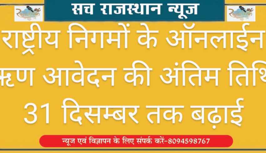 बीकानेर। राजस्थान अनुसूचित जाति, जनजाति वित्त एवं विकास सहकारी निगम लिमिटेड द्वारा अनुसूचित जाति, सफाई कर्मचारी, अन्य पिछड़ा वर्ग एवं विशेष योग्य जन वर्ग के व्यक्तियों को स्वरोजगार के लिए विभिन्न योजनाओं में वर्ष 2024- 25 के लिए ऋण देने के लिए ऑनलाइन आवेदन की तिथि 31 दिसम्बर तक बढ़ाई गई हैं।