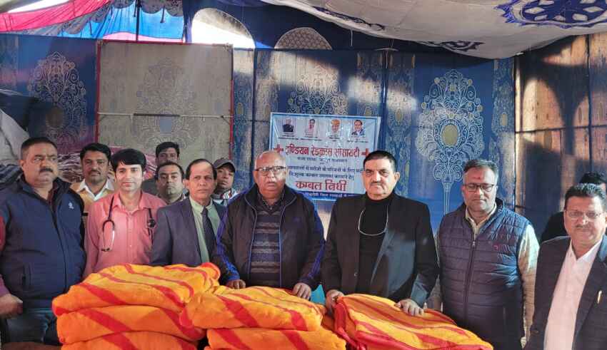 बीकानेर। रेडक्रॉस इंटरनेशनल के सौजन्य से इंडियन रेडक्रॉस सोसायटी ने बुधवार को पीबीएम अस्पताल परिसर में नगर निगम और मारवाड़ जन सेवा समिति द्वारा संचालित रैन बसेरे में 80 कम्बल भेंट किए।