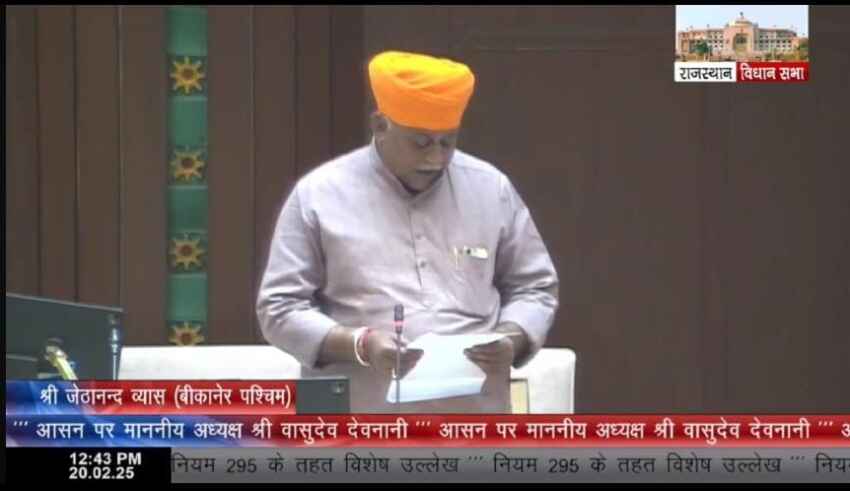 बीकानेर। बीकानेर (पश्चिम) विधायक श्री जेठानंद व्यास ने गुरुवार को विधानसभा के प्रक्रिया व संचालन के नियम 295 के तहत विशेष उल्लेख प्रस्ताव पर बोलते हुए बीकानेर में आयुष शिक्षा विभाग का निदेशालय स्थापित करने की बात रखी।
