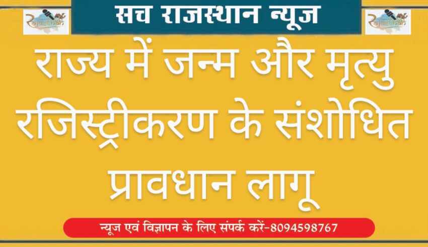बीकानेर। राज्य सरकार द्वारा जन्म और मृत्यु रजिस्ट्रीकरण संशोधित नियम 2025 की अधिसूचना का प्रकाशन दिनांक 07 फरवरी 2025 को राजस्थान राजपत्र में किया गया है। इसके पश्चात राज्य में संशोधित नियम लागू हो गये हैं। बीकानेर जिले में जिला कलक्टर द्वारा समस्त रजिस्ट्रार/उप रजिस्ट्रार (जन्म-मृत्यु) को संशोधित नियमों के प्रावधानों की पूर्ण पालना बाबत निर्देशित किया है, प्रमुख संशोधन इस प्रकार हैं:-