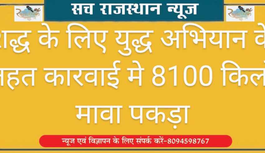 शद्ध के लिए युद्ध अभियान के तहत कारवाई मे 8100 किलो मावा पकड़ा
