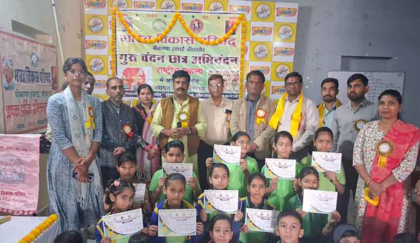भारत विकास परिषद, बीकाणा इकाई द्वारा आज दा विलकिन ऑफ़ विजडम स्कूल, मुक्ता प्रसाद कॉलोनी में परिषद का राष्ट्रीय प्रकल्प गुरु वंदन छात्र अभिनंदन कार्यक्रम का आयोजन किया गया।