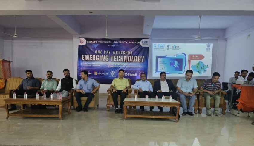 बीकानेर, 26 सितम्बर।सूचना प्रौद्योगिकी और संचार विभाग द्वारा संचालित राजस्थान सेंटर फॉर एडवांस्ड टेक्नोलॉजी (आरकैट) और बीकानेर तकनीकी विश्वविद्यालय (बीटीयू) के संयुक्त तत्वावधान में उभरती प्रौद्योगिकियों पर एक दिवसीय कार्यशाला का आयोजन शुक्रवार को बीटीयू ऑडिटोरियम में किया गया। विद्यार्थियों को रोजगारपरक कौशल और नवीनतम तकनीकी ज्ञान प्रदान करने की दिशा में यह कार्यशाला महत्वपूर्ण रही।