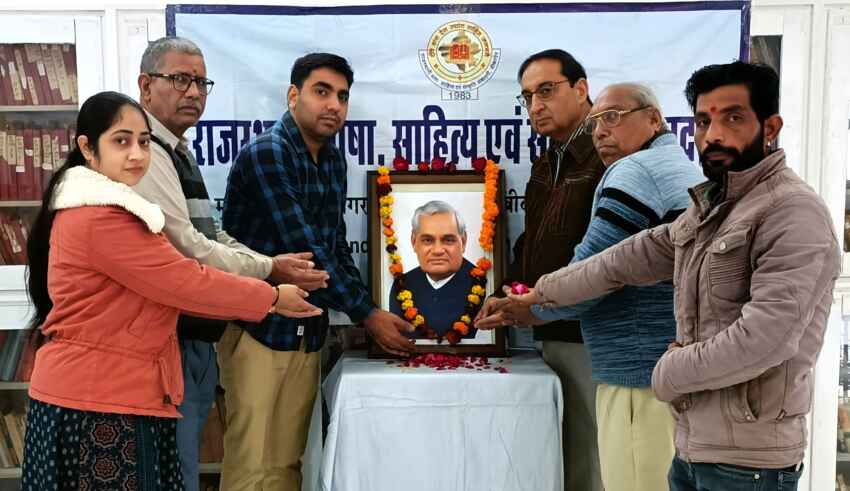 इस अवसर पर अकादमी सचिव केवलिया ने अकादमी कार्मिकों को सुशासन-शपथ दिलाई तथा कार्मिकों ने स्व. अटल बिहारी वाजपेयी के चित्र पर पुष्पांजलि अर्पित की। इस दौरान कनिष्ठ लेखाकार अंजली टाक, वरिष्ठ सहायक श्रीनिवास थानवी, सूचना सहायक केशव जोशी, कानसिंह, मनोज मोदी, रोहित कुमार स्वामी उपस्थित थे।