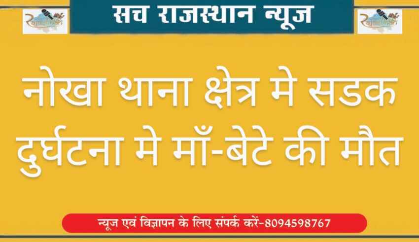 बीकानेर जिले के नोखा थाना क्षेत्र में हुई दुर्घटना में मां-बेटे की दर्दनाक मौत हो गई है। प्राप्त जानकारी के अनुसार नागौर रोड़ स्थित चरकड़ा चौकी के पास ट्रक व मोटरसाइकिल की भिड़ंत हो गई। हादसे में बाइक सवार डेह गांव के 45 वर्षीय मांगीलाल पुत्र घुड़ाराम व उसकी 60 वर्षीय मां शांति देवी पत्नी घुडाराम साटिया की मौत हो गई। वहां मौके पर पहुंची पुलिस ने दोनों के शव को बागड़ी अस्पताल के मोर्चरी में रखवा दिया है।