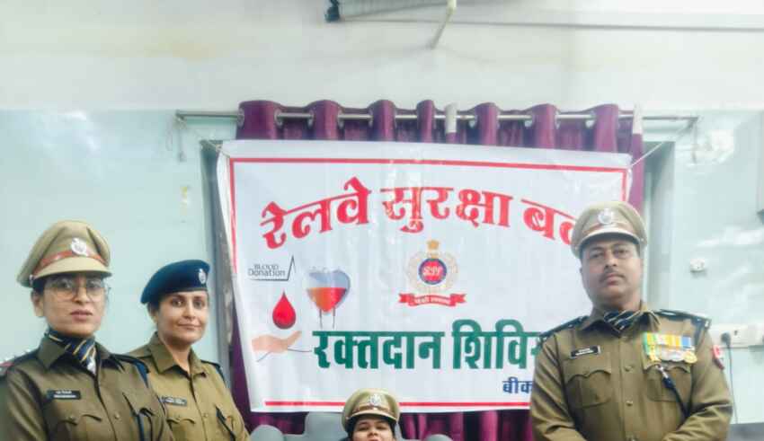 रविवार को गणतंत्र दिवस के उपलक्ष में बीकानेर मंडल के रेलवे सुरक्षा बल के जवानों ने प्रधान मुख्य सुरक्षा आयुक्त (उ. प. रे.)ज्योति कुमार सतीजा एवं मंडल सुरक्षा आयुक्त संजय पीसे के निर्देशन में रक्तदान किया।