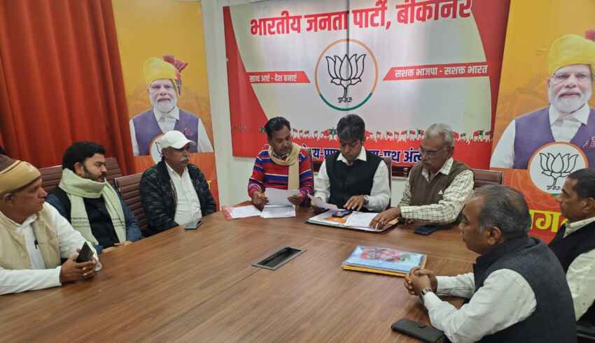 भाजपा बीकानेर देहात में शेष रहे मण्डल अध्यक्षो की चुनाव अधिकारी जगत नारायण जोशी ने चुनाव के बाद की आज घोषणा