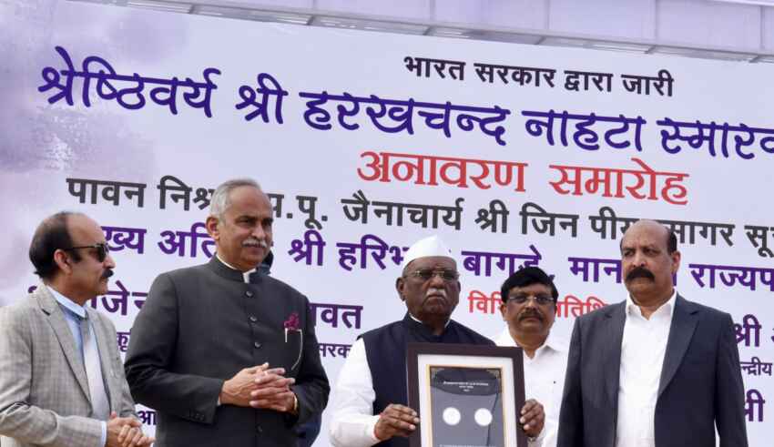 जैनाचार्य श्री जिनपीयूष सागर सूरिश्वर जी महाराज के सान्निध्य में आयोजित समारोह के दौरान राज्यपाल ने कहा कि भारत सरकार द्वारा श्री हरखचंद नाहटा की स्मृति में स्मारक रजत सिक्का जारी करना जीवन को आलोक देने वाले महापुरूषों के सम्मान की परम्परा है। उन्होंने कहा कि समय तथा इतिहास की कसौटी पर ही किसी भी व्यक्ति के व्यक्तित्व का मूल्यांकन होता है। श्री हरखचंद नाहटा के जीवट व्यक्तित्व, आत्मविश्वास, दूरदर्शिता तथा लोक मंगल की बलवती भावना ने उन्हें विशेष स्थान दिलाया।