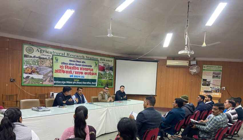 बीकानेर। कृषि विभागीय अधिकारियों की दक्षता वृद्धि एवं कृषि-उद्यानिकी उन्नत नवाचारी तकनीकी से रूबरू कराने के क्रम में राष्ट्रीय मिशन एडिबल ऑयल (तिलहन) योजना के तहत कृषि विभागीय अधिकारियों का प्रशिक्षण कार्यक्रम मंगलवार को कृषि अनुसंधान संस्थान, स्वामी केशवानंद राजस्थान कृषि विश्वविद्यालय में आयोजित किया गया।