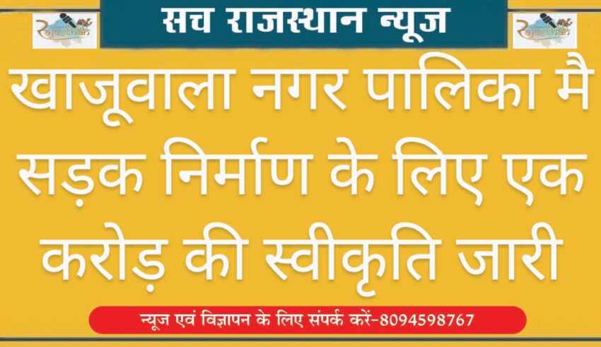 बीकानेर। खाजूवाला विधायक डॉ. विश्वनाथ मेघवाल की अभिशंसा पर स्थानीय निकाय विभाग द्वारा सार्वजनिक निर्माण विभाग के माध्यम से नगरीय निकायों में होने वाली सड़क निर्माण के तहत खाजूवाला नगर पालिका क्षेत्र में 2 हजार 230 मीटर सड़क निर्माण के लिए एक करोड़ रुपए की प्रशासनिक एवं वित्तीय स्वीकृतियां जारी की है।