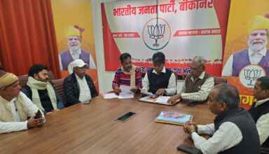 बीकानेर भाजपा बीकानेर देहात में शेष रहे मण्डल अध्यक्षो की चुनाव अधिकारी जगत नारायण जोशी ने चुनाव के बाद की आज घोषणा