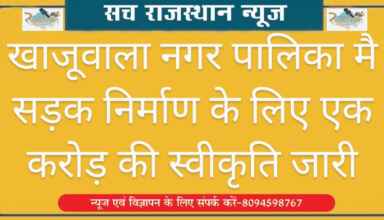 खाजूवाला नगर पालिका मै सड़क निर्माण के लिए एक करोड़ की स्वीकृति जारी