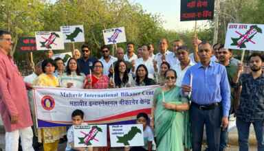 बीकानेर। कश्मीर के पहलगाम में गत दिनों हुई नृशंस आतंकी घटना के विरोध में सोमवार को महावीर इंटरनेशनल बीकानेर की ओर से कलक्ट्री से कैंडल मार्च निकाला गया। इसके बाद सर्किट हाउस के सामने स्थित महावीर उद्यान में आतंकी घटना में दिवंगत पर्यटकों की आत्मिक शांति के लिए नवकार मंत्र का सामूहिक जाप किया गया। इससे पूर्व, महावीर इंटरनेशनल बीकानेर …